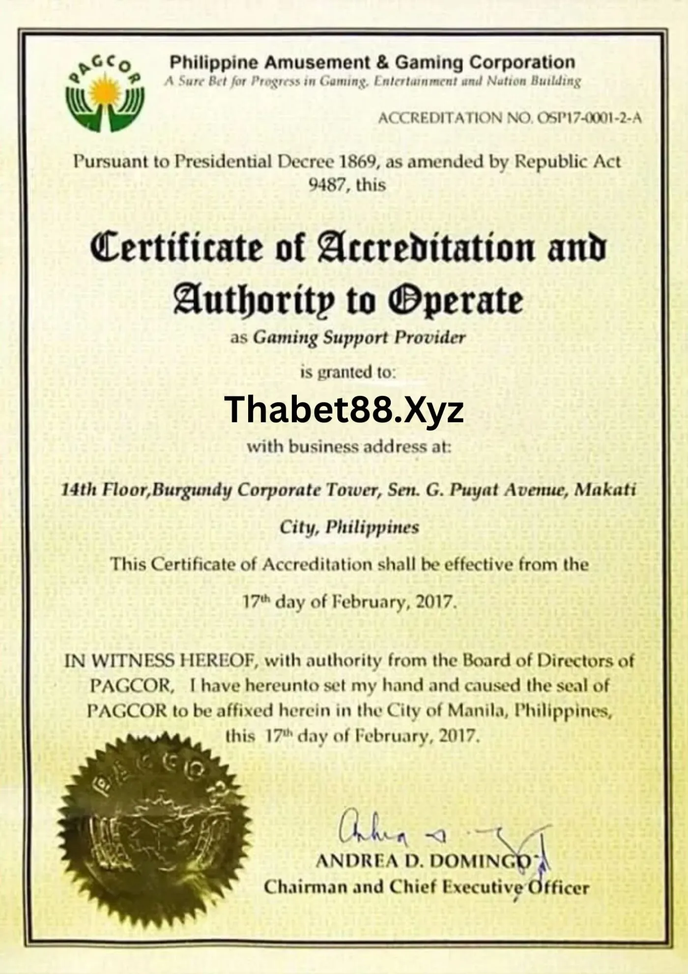 | Giấy phép hoạt động | PAGCOR, Isle of Man, Cube Limited |